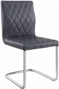 The Ansonia side chair features a sleek chrome frame paired with padded gray PU upholstery. Designed with a stylish quilting pattern on the seat and back, this armless, high-back chair combines comfort and elegance, making it perfect for modern dining spaces.Read More