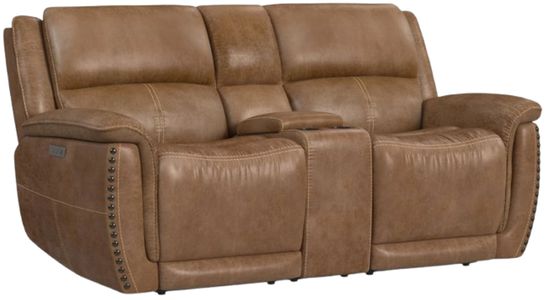 Beautiful, traditional style is enhanced with modern features and ergonomics with the Beau fabric power reclining loveseat with console and power headrests. Striking nailhead trim and flange-edge stitching detail make a timeless design statement that looks equally at home in a modern farmhouse living room or rustic man cave.Read More